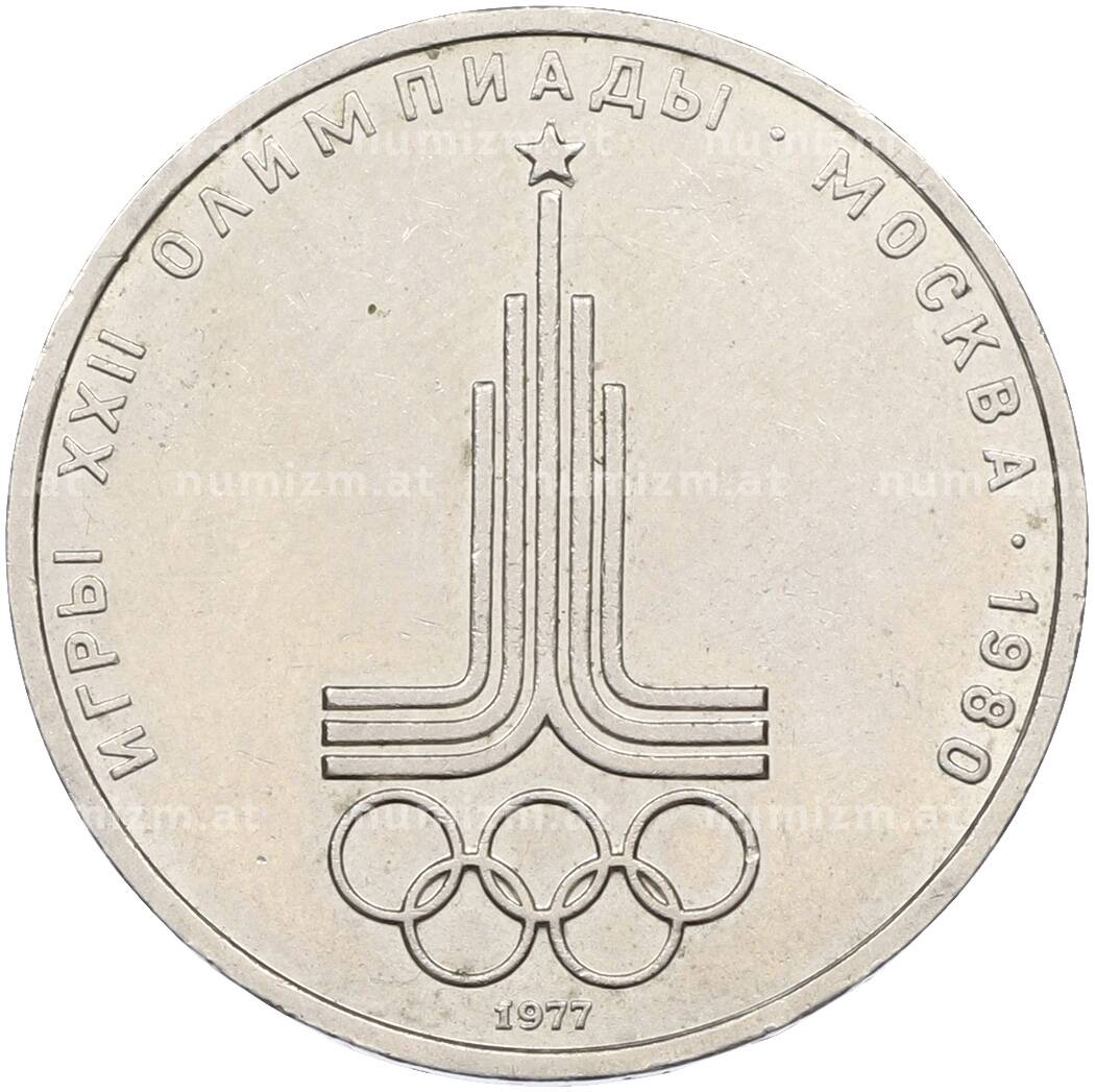 Интернет магазин «Нумизмат» предлагает приобрести 1 рубль 1977 года «XXII летние Олимпийские Игры 1980 в Москве (Олимпиада-80) — Эмблема».