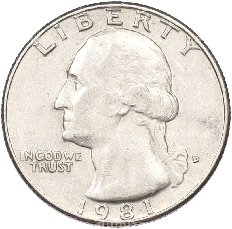 Купить 1/4 доллара (25 центов) 1981 года D США по привлекательной цене можно в нашем интернет-магазине — Вам достаточно оформить заказ на сайте. Все монеты, представленные в каталоге, находятся в наличии на нашем складе.