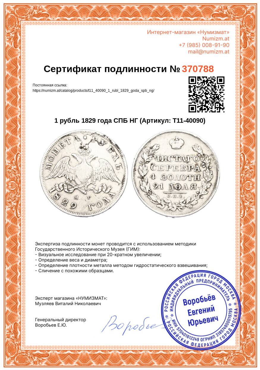 20.01.2025Интернет магазин «Нумизмат» предлагает приобрести 1 рубль 1829 года СПБ НГ.