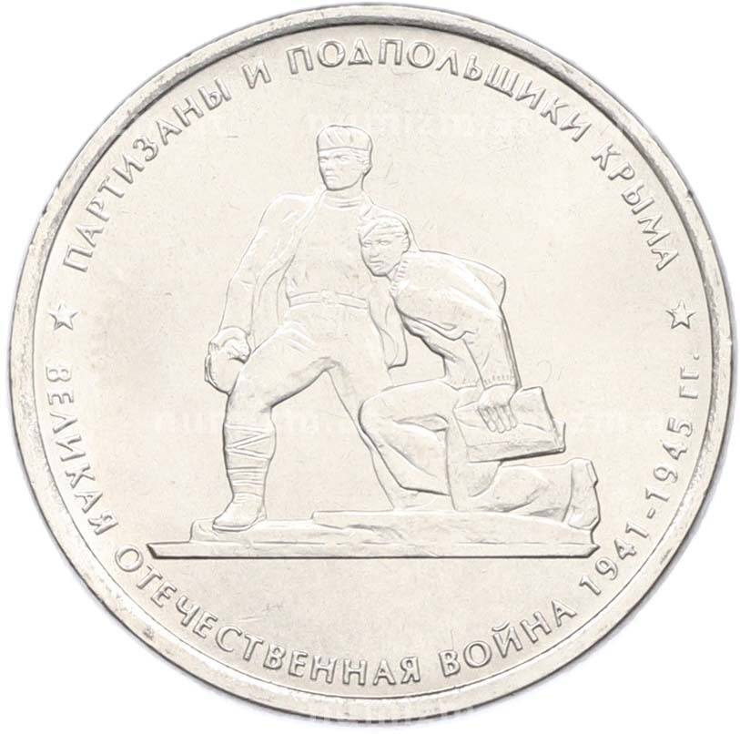 Монета 5 рублей 2015 года ММД «Великая Отечественная война — Партизаны и подпольщики Крыма» (Артикул: T11-40445): подробные характеристики, качественные фотографии в высоком разрешении, низкая цена.
