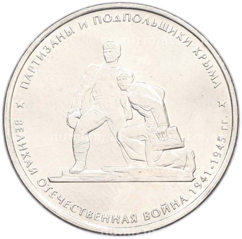 Монета 5 рублей 2015 года ММД «Великая Отечественная война — Партизаны и подпольщики Крыма» (Артикул: T11-40448): подробные характеристики, качественные фотографии в высоком разрешении, низкая цена.