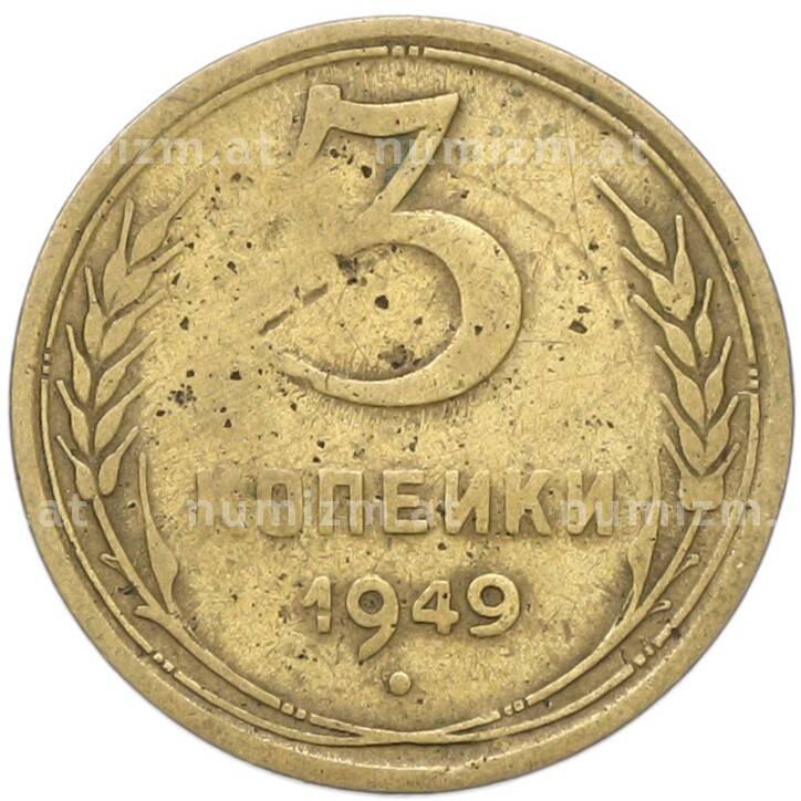 Монета 3 копейки 1949 года (Артикул: T11-40874): подробные характеристики, качественные фотографии в высоком разрешении, низкая цена.