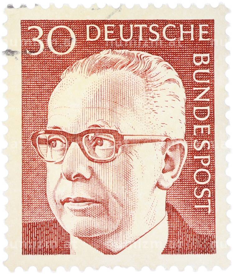 Почтовая марка 30 пфеннигов 1970 года Западная Германия (ФРГ) «Президент Густав Хайнеман» (Артикул: T11-41039): подробные характеристики, качественные фотографии в высоком разрешении, низкая цена.