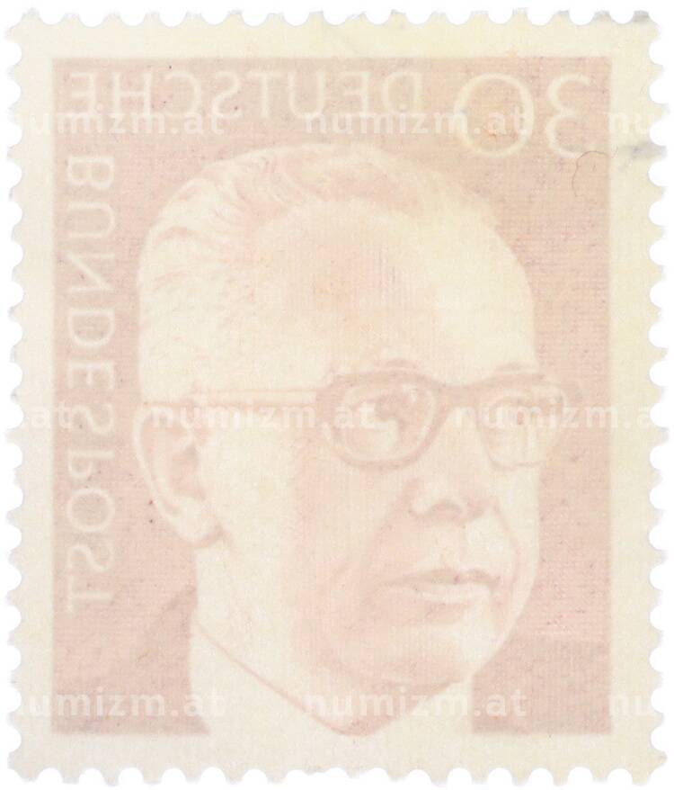 Интернет магазин «Нумизмат» предлагает приобрести Почтовая марка 30 пфеннигов 1970 года Западная Германия (ФРГ) «Президент Густав Хайнеман».