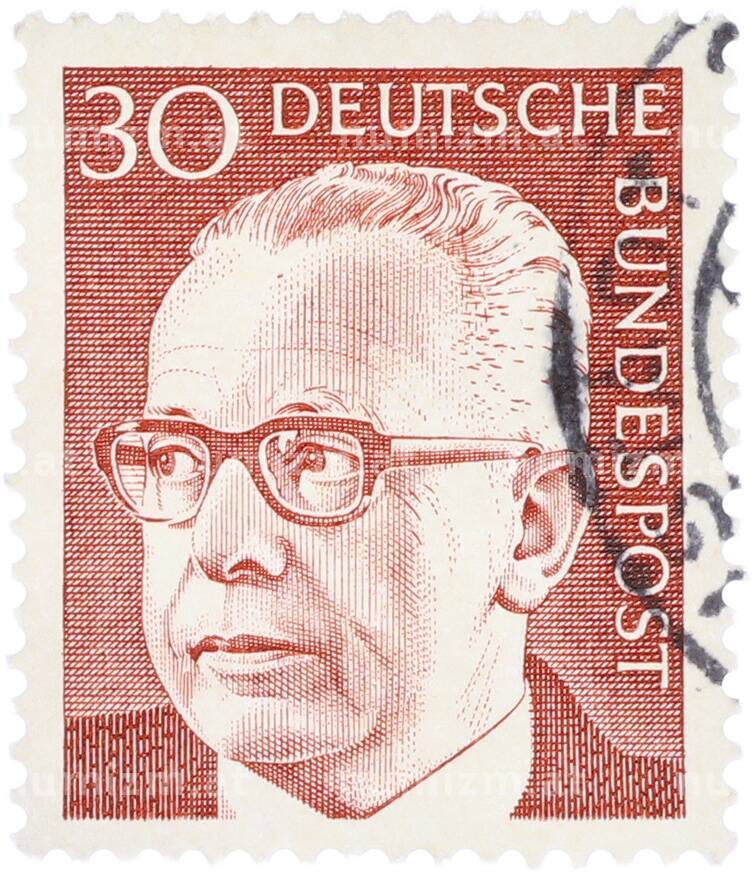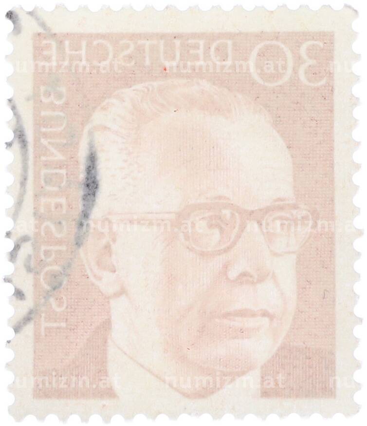 Интернет магазин «Нумизмат» предлагает приобрести Почтовая марка 30 пфеннигов 1970 года Западная Германия (ФРГ) «Президент Густав Хайнеман».