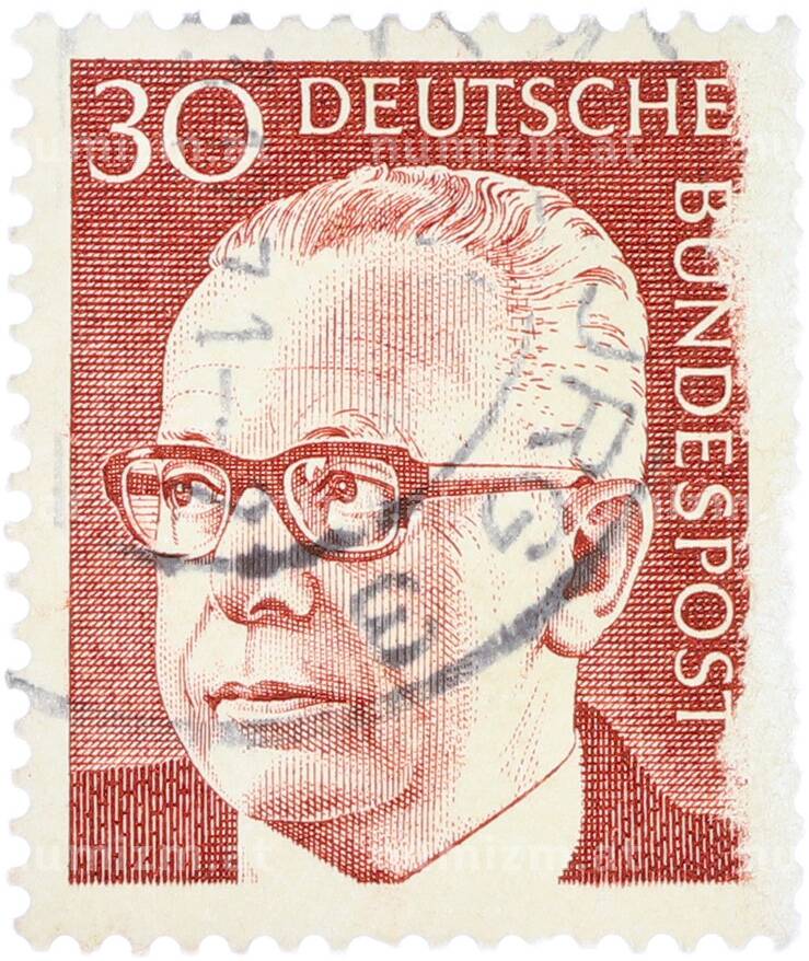 Почтовая марка 30 пфеннигов 1970 года Западная Германия (ФРГ) «Президент Густав Хайнеман» (Артикул: T11-41058): подробные характеристики, качественные фотографии в высоком разрешении, низкая цена.