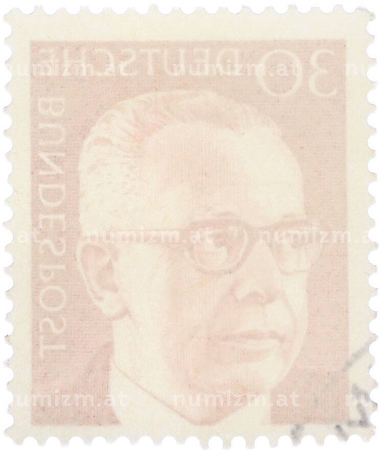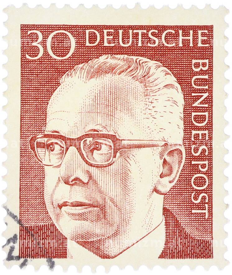 Почтовая марка 30 пфеннигов 1970 года Западная Германия (ФРГ) «Президент Густав Хайнеман» (Артикул: T11-41060): подробные характеристики, качественные фотографии в высоком разрешении, низкая цена.