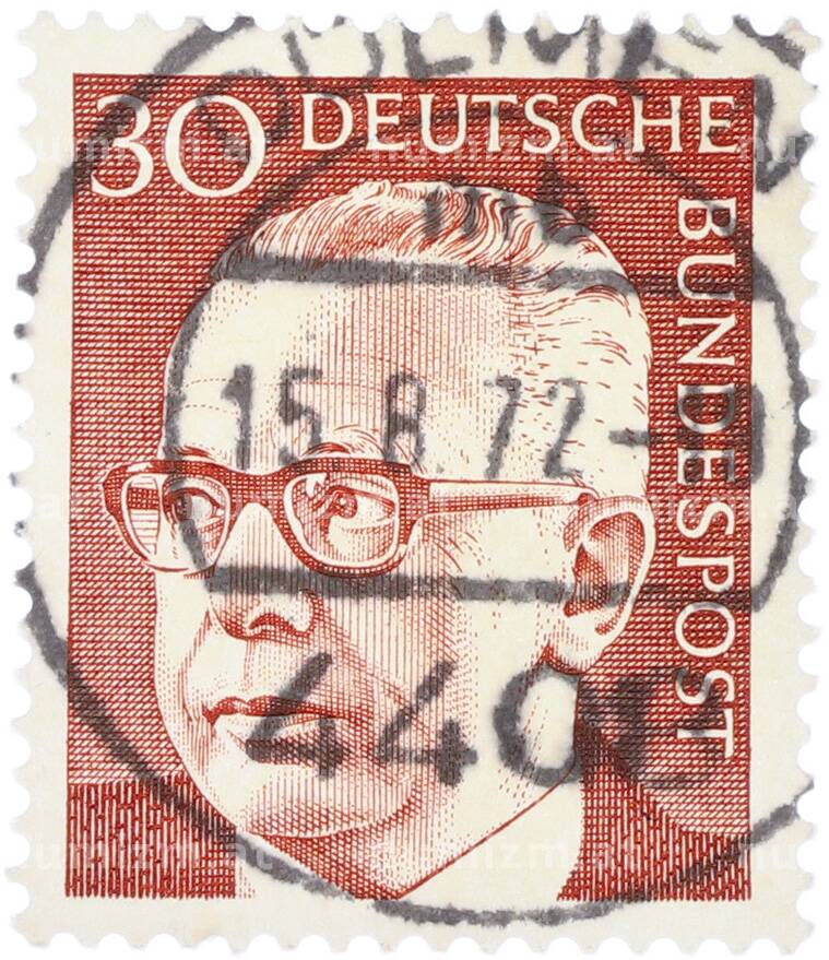 Интернет магазин «Нумизмат» предлагает приобрести Почтовая марка 30 пфеннигов 1970 года Западная Германия (ФРГ) «Президент Густав Хайнеман».