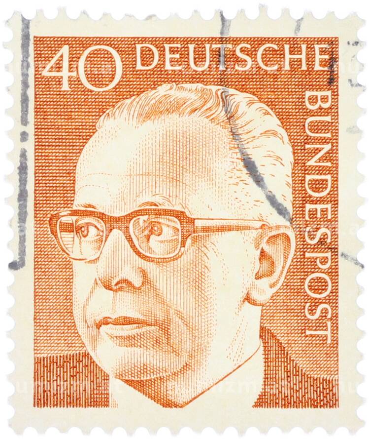 Почтовая марка 40 пфеннигов 1970 года Западная Германия (ФРГ) «Президент Густав Хайнеман» [Артикул: T11-41075]