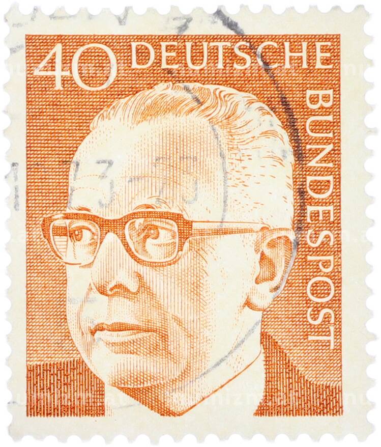 Почтовая марка 40 пфеннигов 1970 года Западная Германия (ФРГ) «Президент Густав Хайнеман» (Артикул: T11-41082): подробные характеристики, качественные фотографии в высоком разрешении, низкая цена.