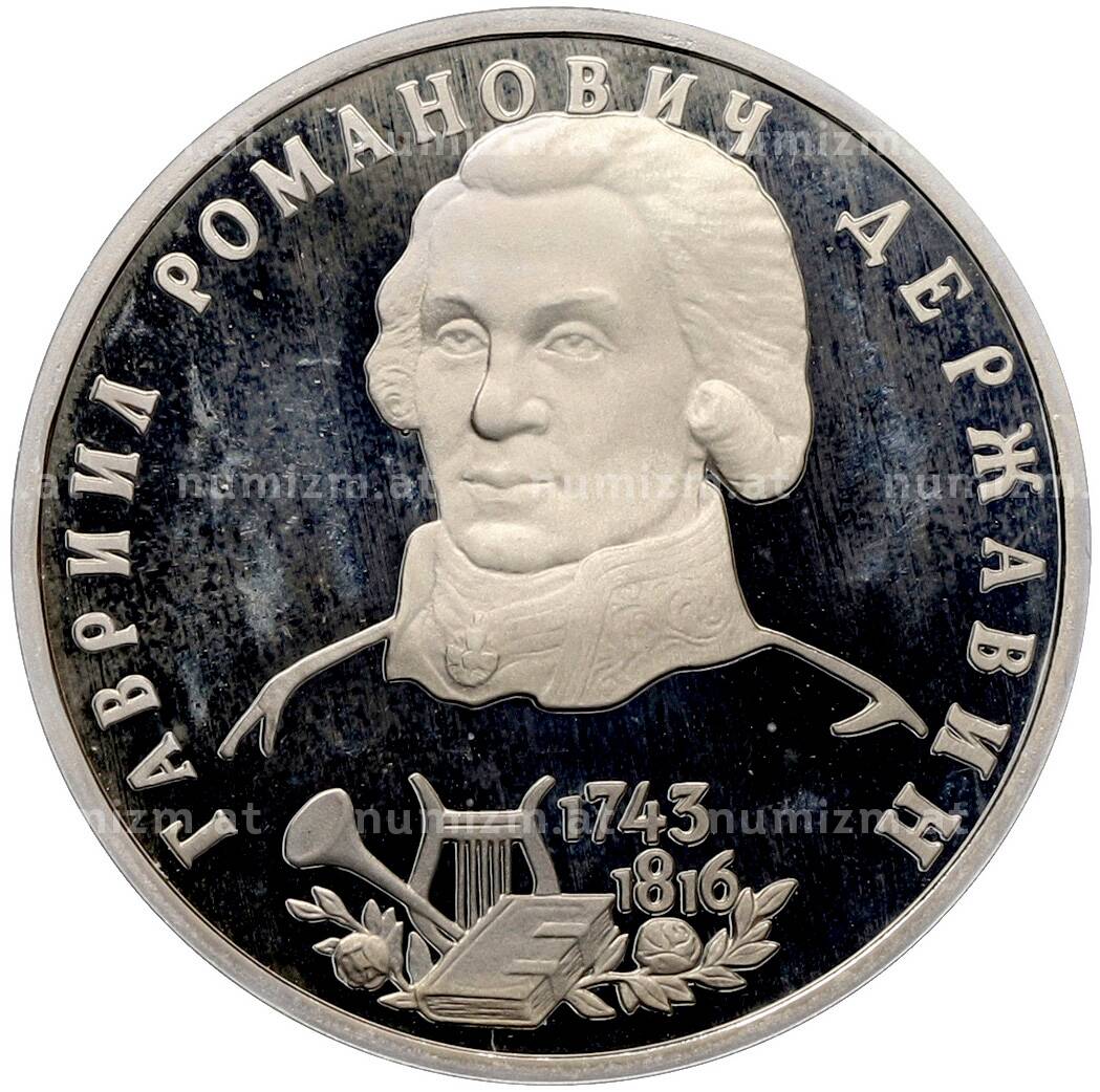 Купить 1 рубль 1993 года ЛМД «Гаврила Романович Державин» (Proof) по привлекательной цене можно в нашем интернет-магазине — Вам достаточно оформить заказ на сайте. Все монеты, представленные в каталоге, находятся в наличии на нашем складе.