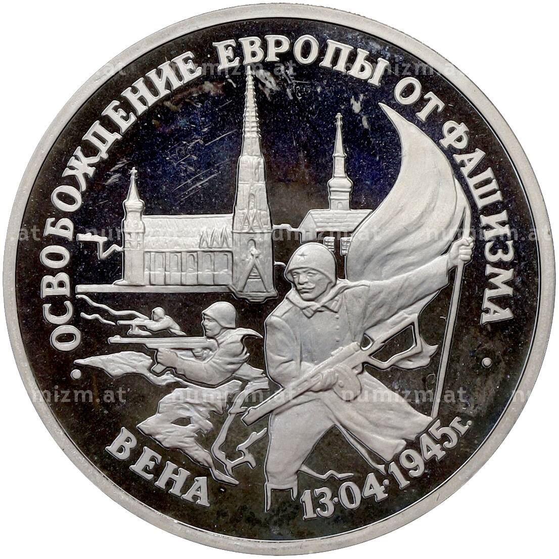 Купить 3 рубля 1995 года ЛМД «Освобождение Европы от фашизма — Вена» по привлекательной цене можно в нашем интернет-магазине — Вам достаточно оформить заказ на сайте. Все монеты, представленные в каталоге, находятся в наличии на нашем складе.