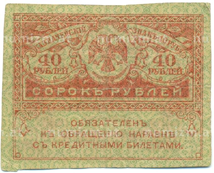 Банкнота 40 рублей 1917 года (Артикул: T11-42370): подробные характеристики, качественные фотографии в высоком разрешении, низкая цена.