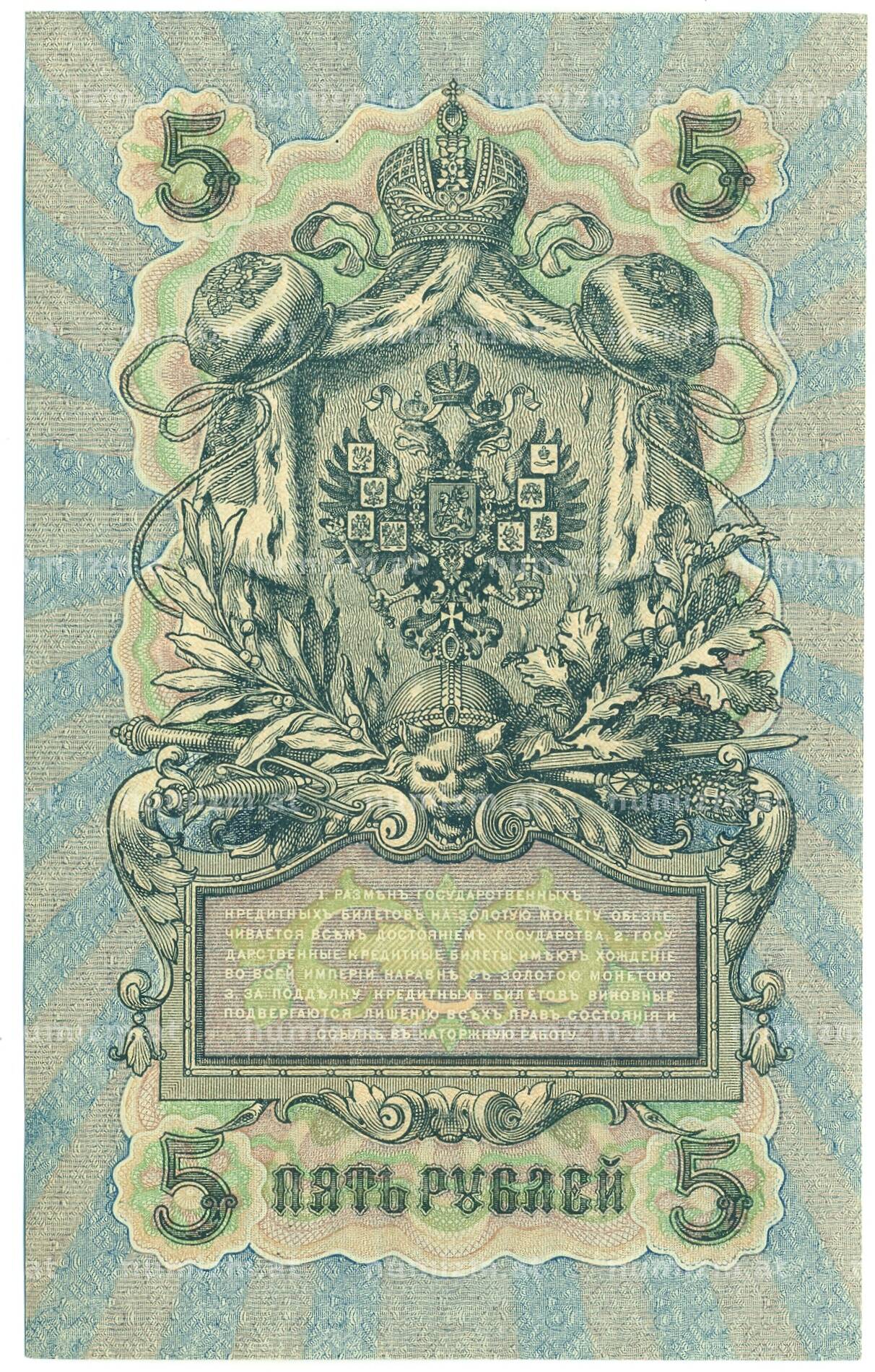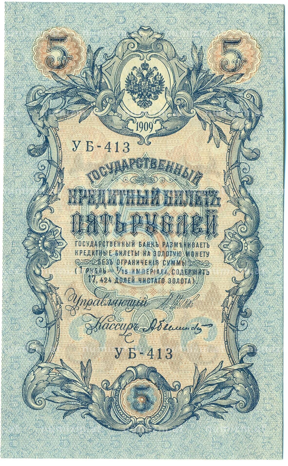 Банкнота 5 рублей 1909 года Шипов / Былинский (Артикул: T11-44114): подробные характеристики, качественные фотографии в высоком разрешении, низкая цена.