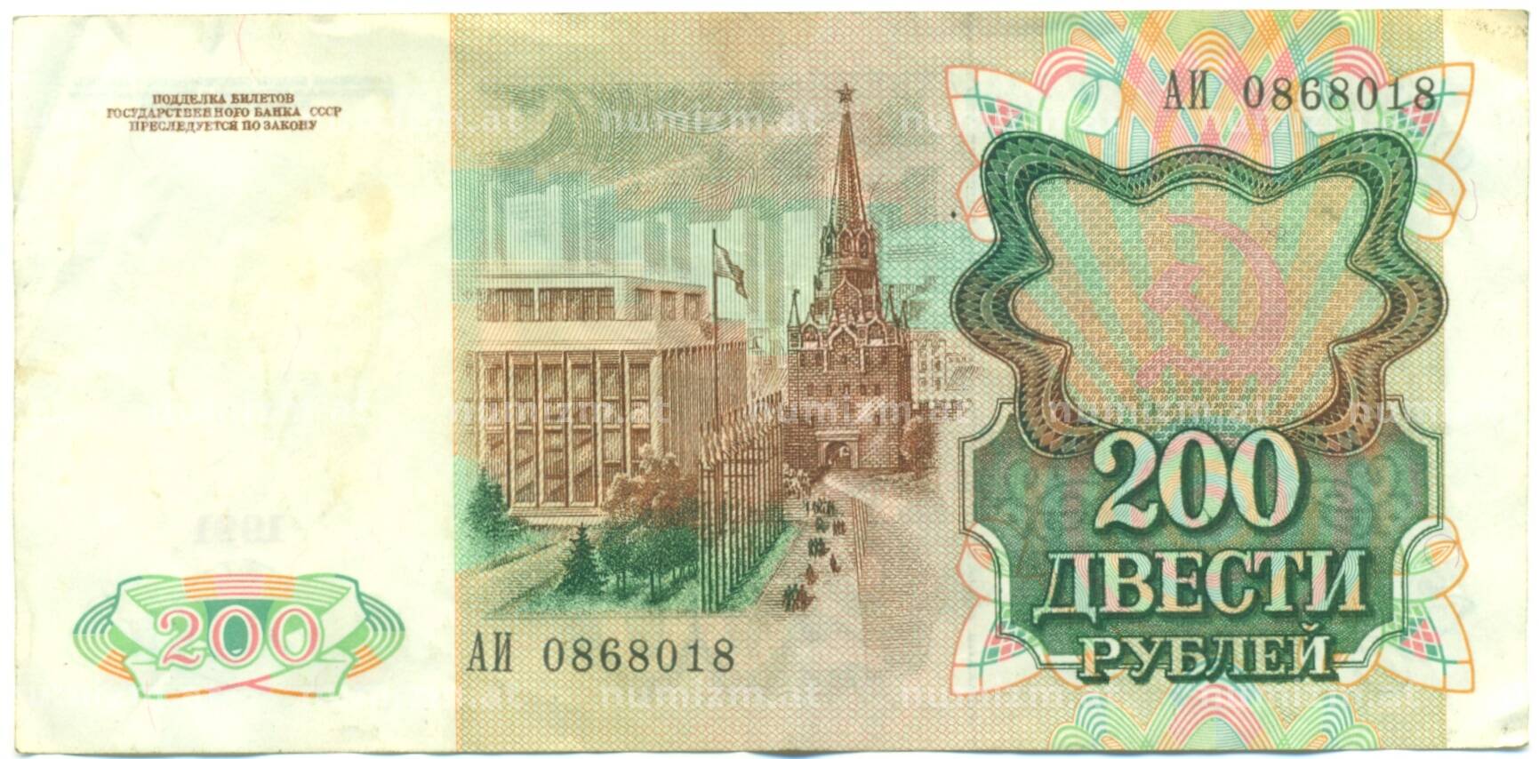 20.01.2025Интернет магазин «Нумизмат» предлагает приобрести 200 рублей 1991 года.