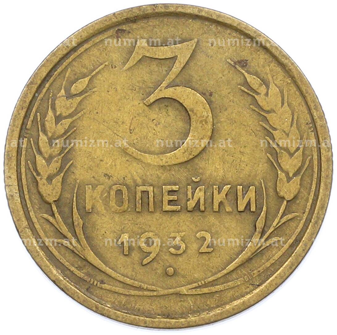Монета 3 копейки 1932 года (Артикул: T11-44650): подробные характеристики, качественные фотографии в высоком разрешении, низкая цена.