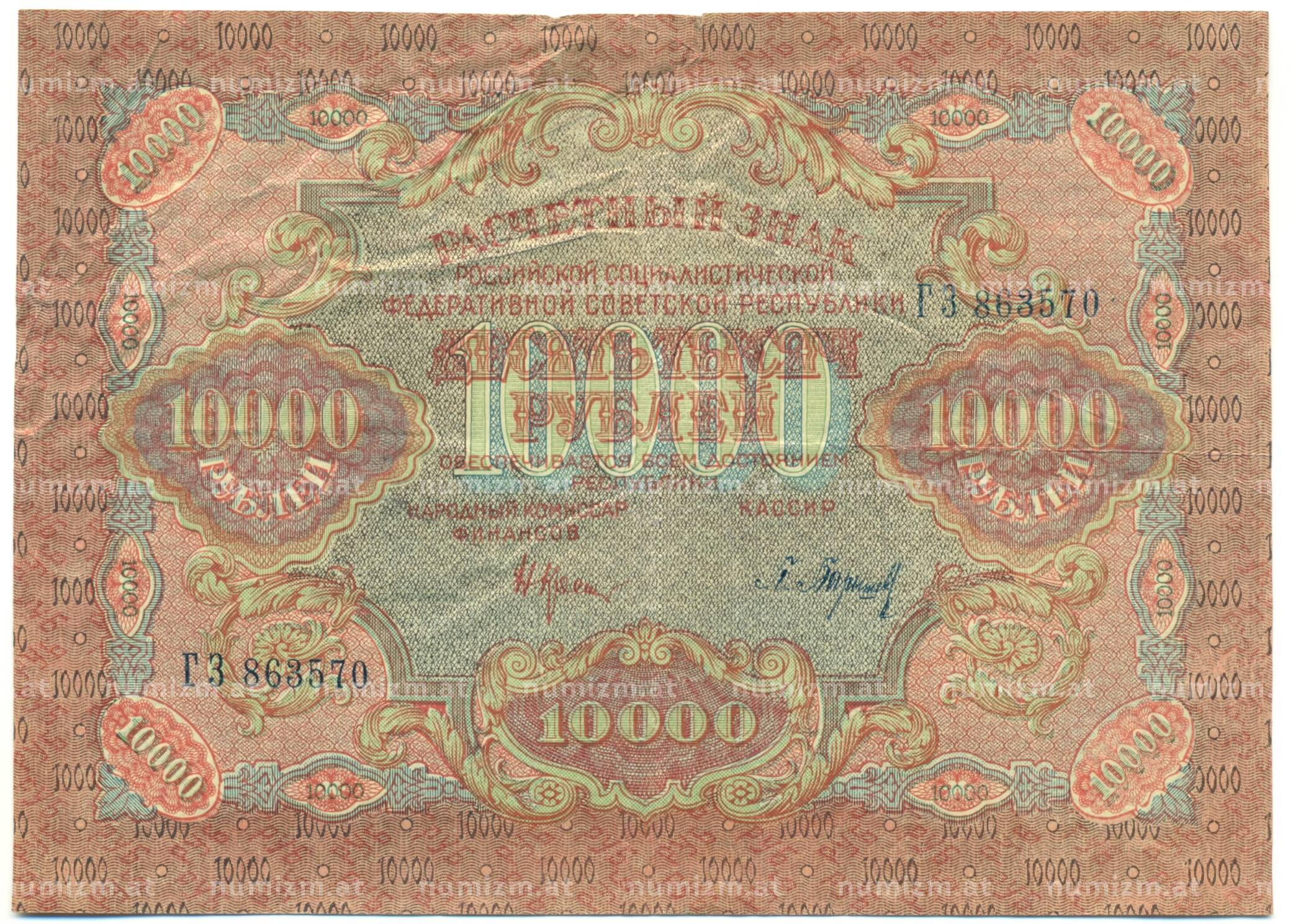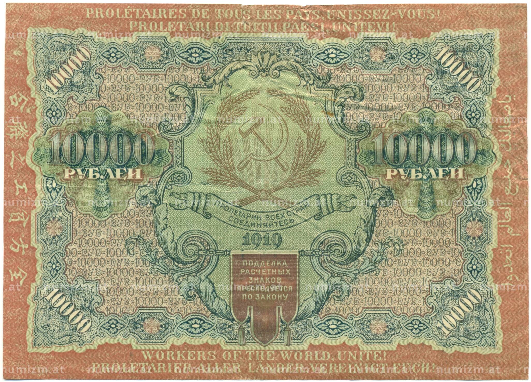 20.01.2025Интернет магазин «Нумизмат» предлагает приобрести 10000 рублей 1919 года.