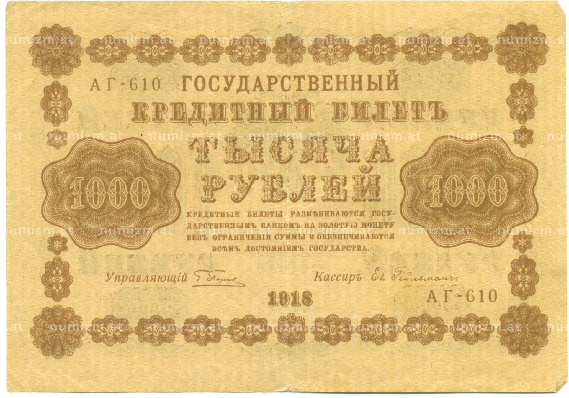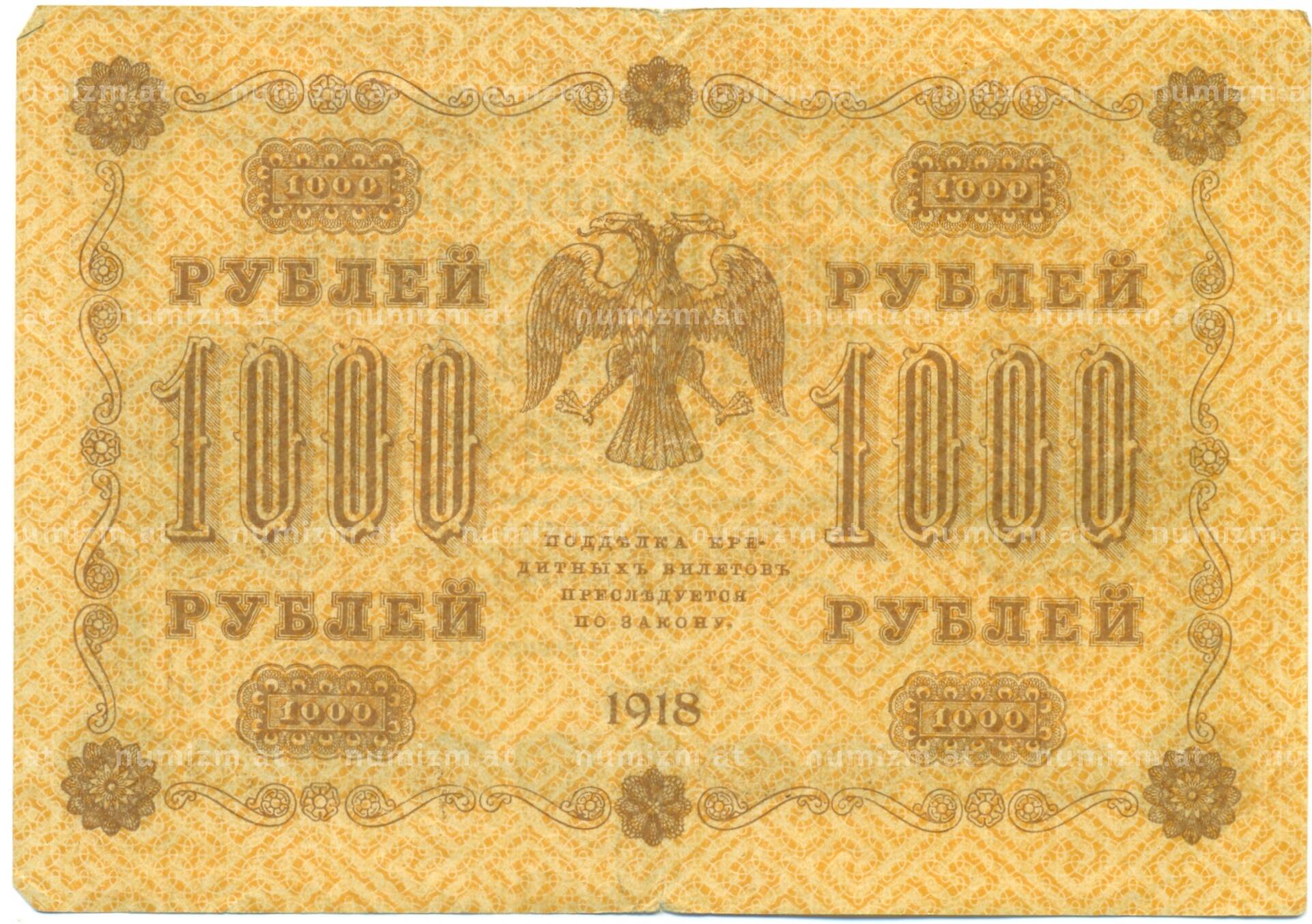 Банкнота 1000 рублей 1918 года (Артикул: T11-44961): подробные характеристики, качественные фотографии в высоком разрешении, низкая цена.