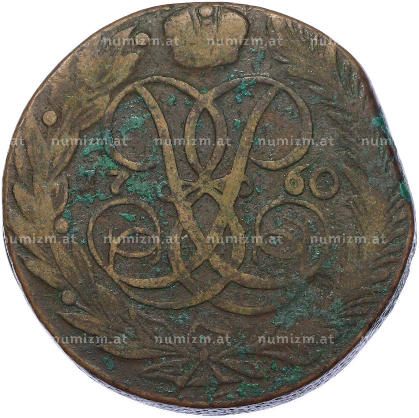 Купить 5 копеек 1760 года по привлекательной цене можно в нашем интернет-магазине — Вам достаточно оформить заказ на сайте. Все монеты, представленные в каталоге, находятся в наличии на нашем складе.