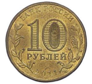 Каждого экземпляра традиционно чеканят по 10 млн. шт. Монеты можно встретить в свободном обиходе, поэтому они пользуются высоким спросом у новичков-нумизматов. Цена обычных 10 рублей 2011г. «Города Воинской Славы» начинается с 50-80 руб, но это актуально только для монет мешковой сохранности, не бывших в обращении. Все экземпляры этого года отчеканены на Санкт-Петербургском монетном дворе. Металл изготовления – сталь с латунным покрытием. В список отчеканенных ГВС в 2011 году попали: